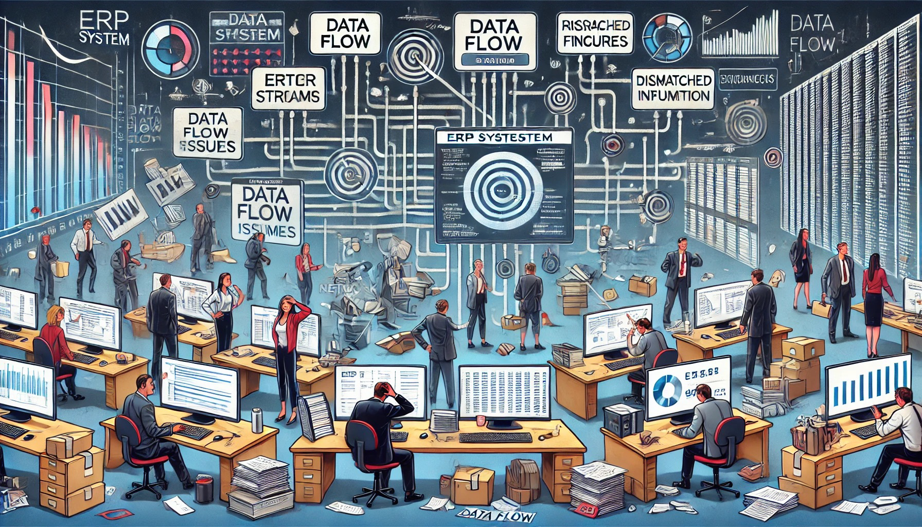 ERP systém je navržen tak, aby integroval různé procesy firmy (např. finance, výrobu, logistiku, CRM). Pokud je implementace chaotická nebo neadekvátní, může to vést k následujícím problémům:
